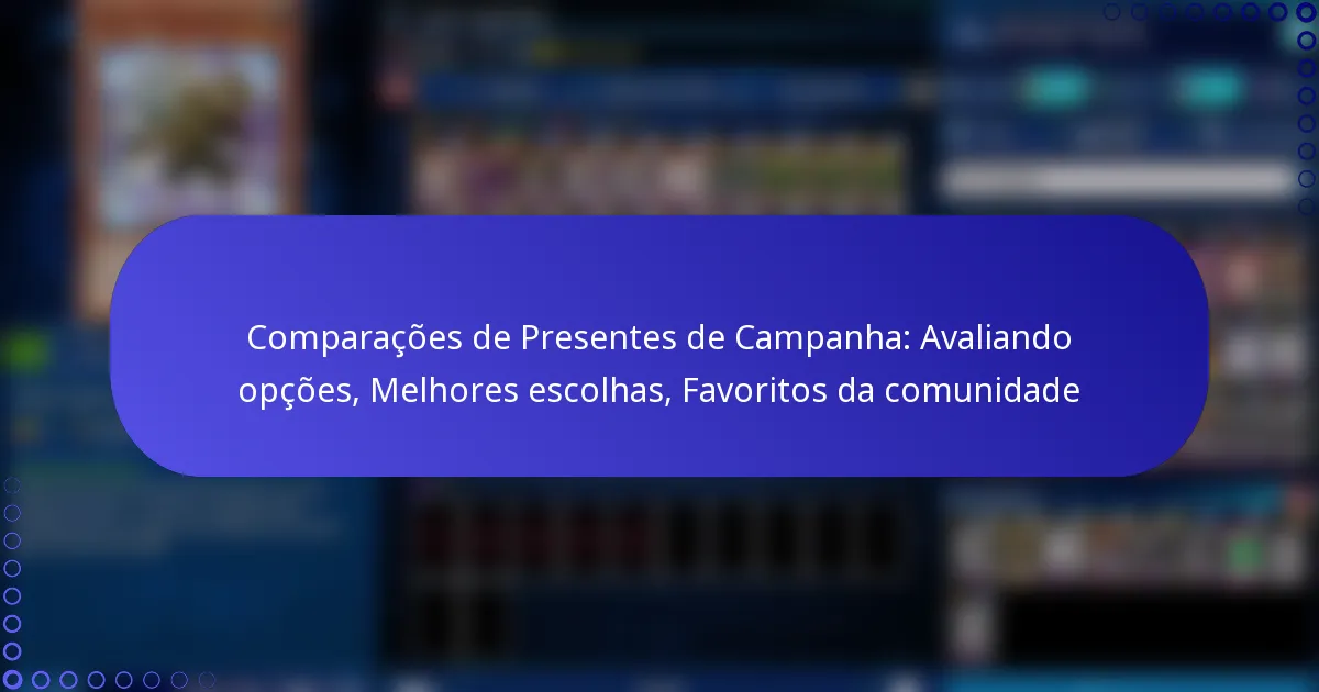 Ao comparar presentes de campanha, considere critérios como custo, qualidade, usabilidade e popularidade dentro da comunidade. Cada um destes fatores desempenha um papel crucial na determinação da eficácia geral do presente em envolver o seu público.